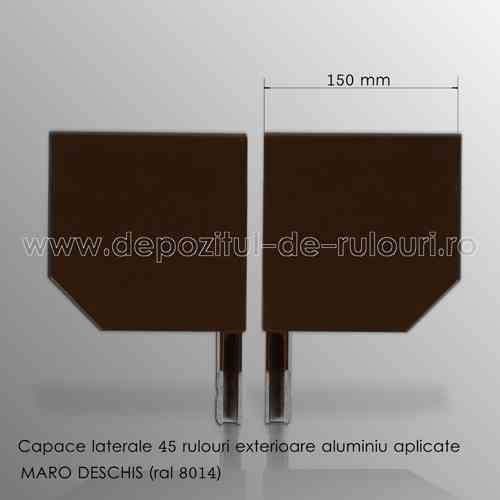 Capacele laterale din aluminiu sunt unele dintre acele componente pentru rulouri exterioare aluminiu aplicate in golul ferestrei sau pe peretele exterior deasupra ferestrei, acestea pot fi folosite pentru rulourile exterioare manuale cat si pentru cele actionate electric cu telecomanda sau intrerupator. Rulourile exterioare maro deschis ral 8014 au pretul pe metru patrat mai mic decat cele in culori de lemn, de asemenea cele mai mici preturi pentru rulouri se regasesc la firmele din zona Bucuresti si Ilfov.
